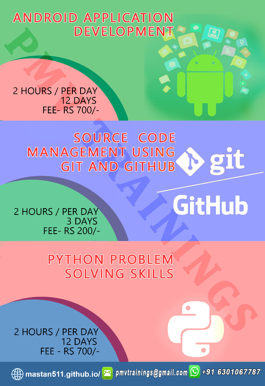 Having a experiance(8 + years) in trainings and also development in various technologies like a Java, Android Application Development(Java & Kotlin), Python, HTML, CSS, PHP, MIT App Inventor and Git&GitHub.